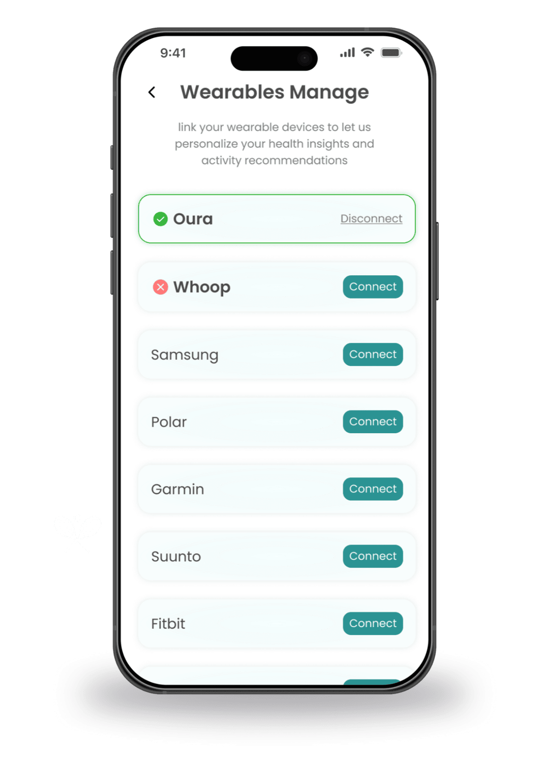 Integrate your favourite wearable device to track your lifestyle metrics between consultations. Our platform can use your wearable data to deliver personalised insights about you.